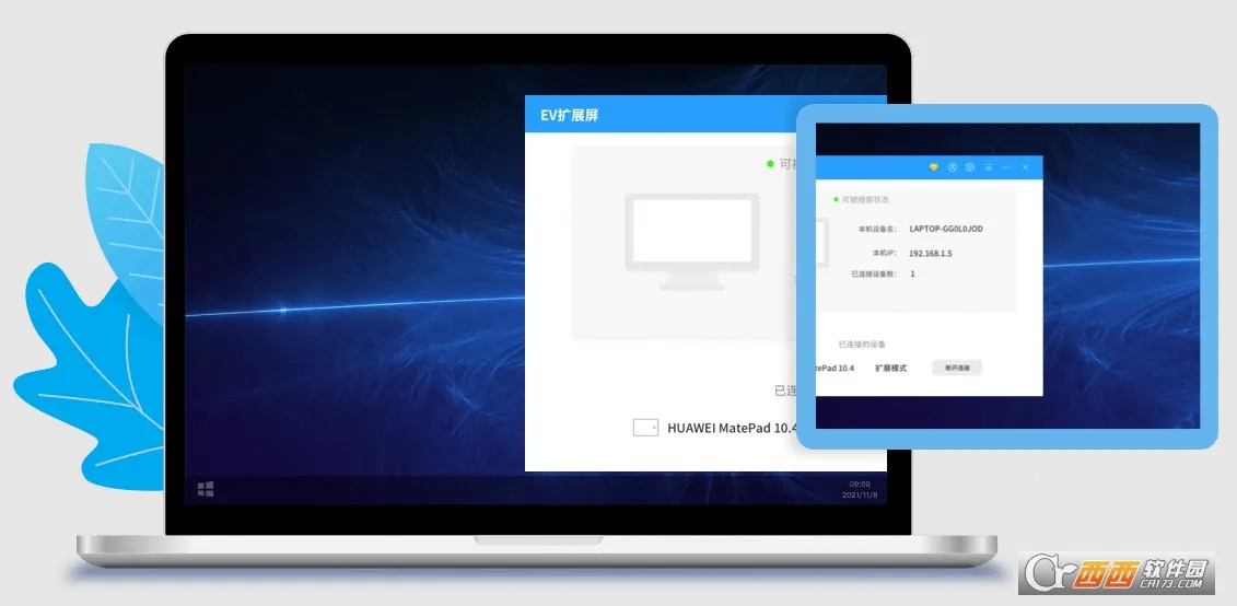 ev扩展屏连接方便,手机与电脑处于同一网络下,手机自动搜索电脑设备,点击即可一键连接,成功后手机就能成为电脑的第二个屏幕。