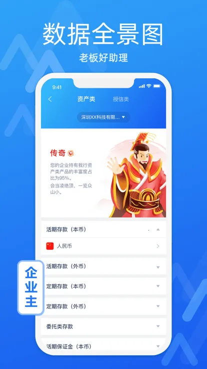 2. 功能丰富:涵盖查询收益率、企业授信、收支总账、安全中心等,还能进行移动审批,可观名下所有资产,一机多企全景可视。