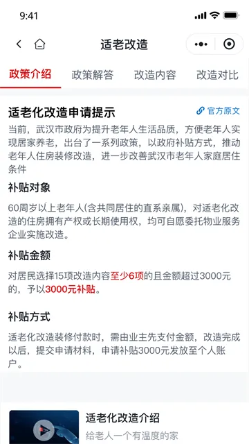 3. 提供适老化改造方案,如加建扶手、轮椅适用等,能享受补贴,贴近老年人居住需求。有一站式购房金融服务,包括贷款、契税补贴、按揭申请等,足不出户就能办理。