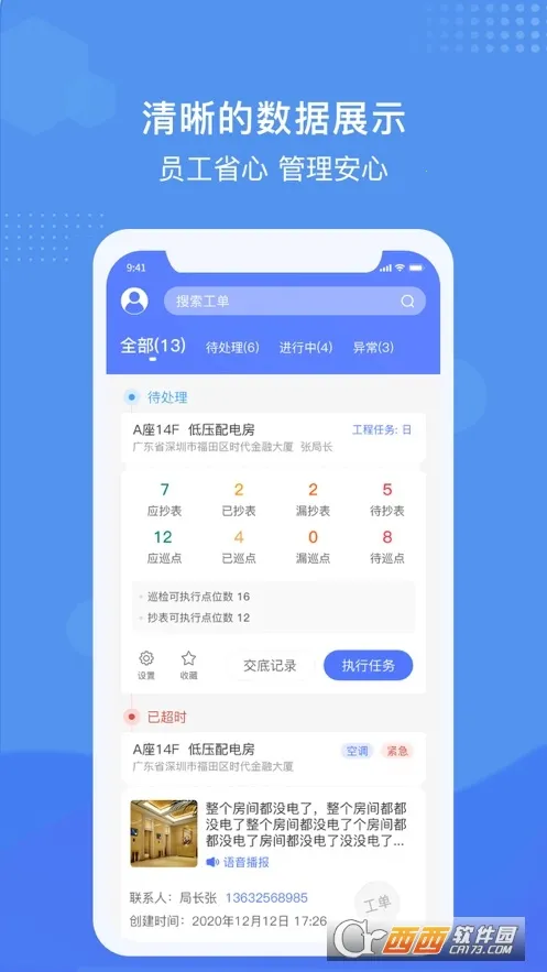 3、数据显示清晰,员工管理起来省心又安心,设备巡检清单登记任务一目了然。