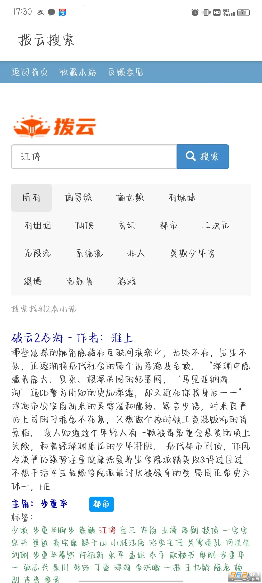 拨云搜索app是功能强大的小说搜索工具,有超大型资源库,含多种类型小说。支持关键词搜索,界面简单,无需会员。具备丰富资源、快速更新等特色,还有BT磁力种子下载等功能。