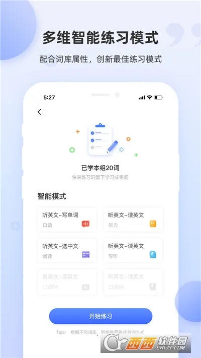 3. 配合词库属性,智能推荐最佳练习模式,多维度助你全面掌握单词。