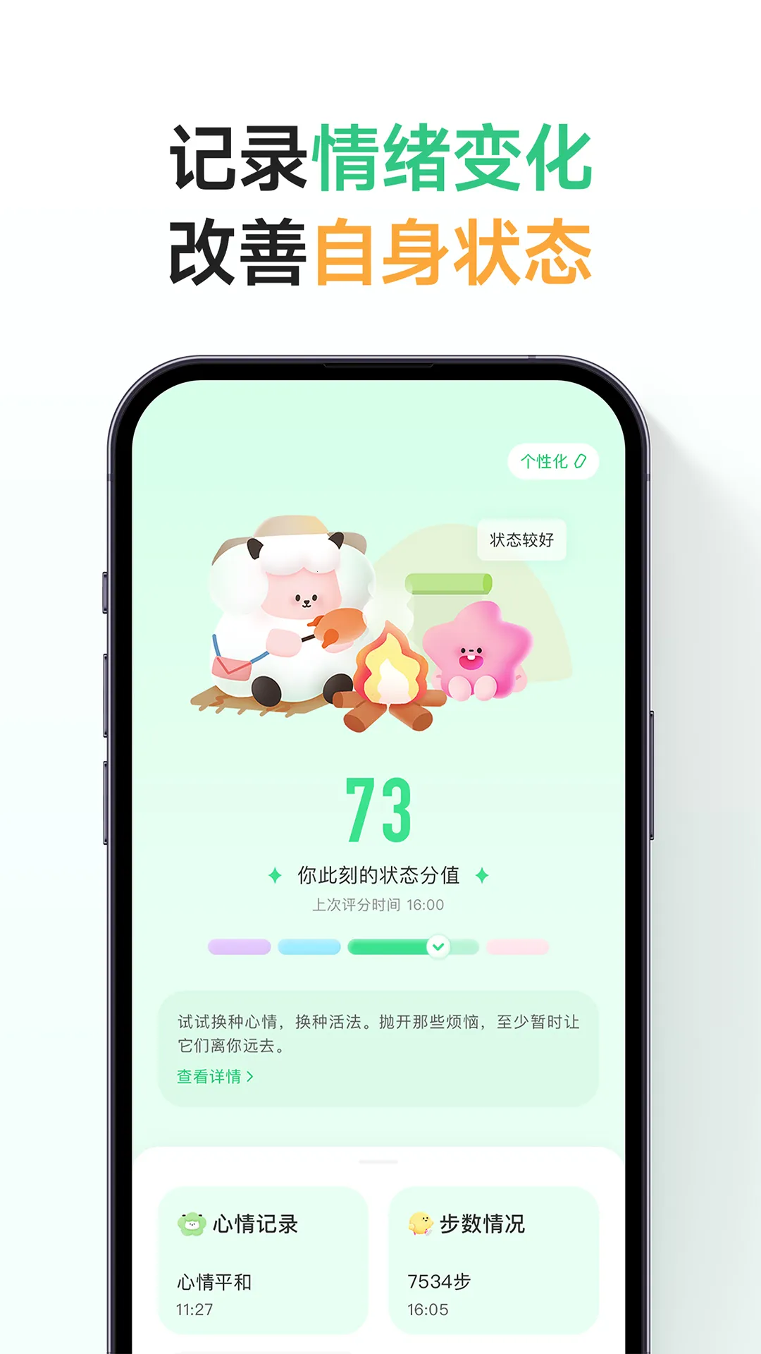 其功能丰富,有强大检测功能助你了解健康与情绪状态,制定针对性计划应对糟糕情绪,还有新事件挑战增加互动乐趣。