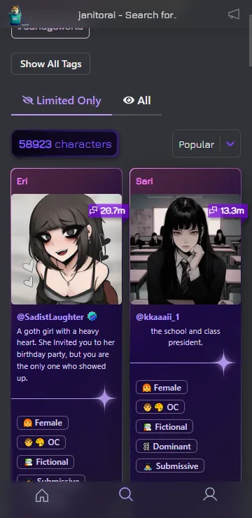 Janitor最新手机版主打自由轻松,无花哨设计。汇聚原创AI角色,角色来源自由,通过角色卡系统让AI更具个性。对话自然情绪化,界面虽偏英文但指令可切换中文,能带来超知心陪伴。