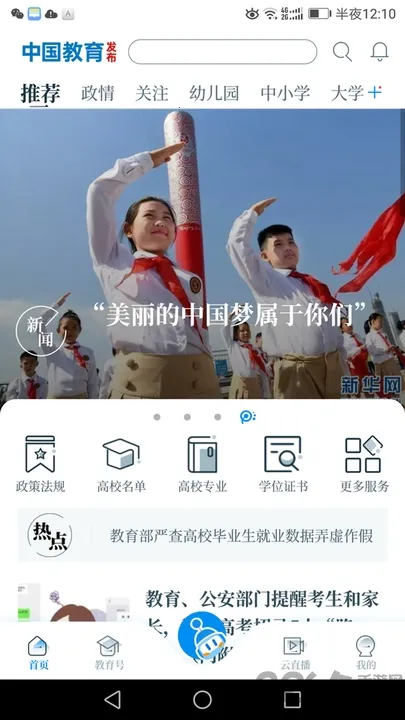 4. 信息发布及时:打造24小时不间断运行的教育信息发布厅,120余家省级教育部门、教育部直属高校及部省合建高校的官方教育号已入驻,确保国家教育政策、重要通知、权威解读、直播活动等内容零时差触达用户,权威信息一端尽览。