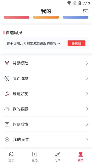 2、软件提供了四大主要板块、分别是首页、自选、行情以及我的管理。
