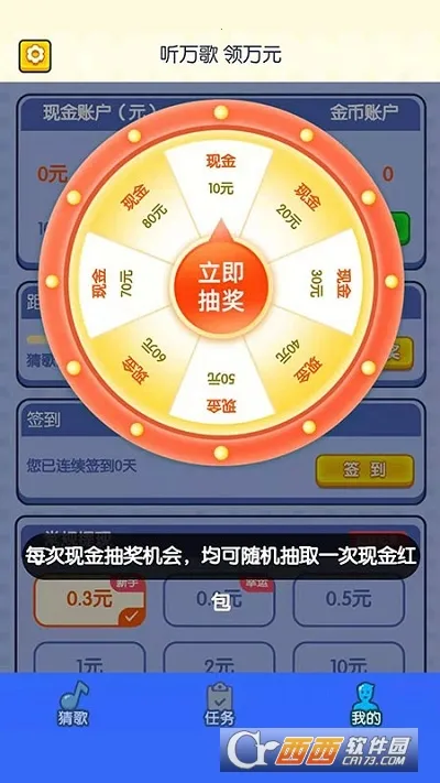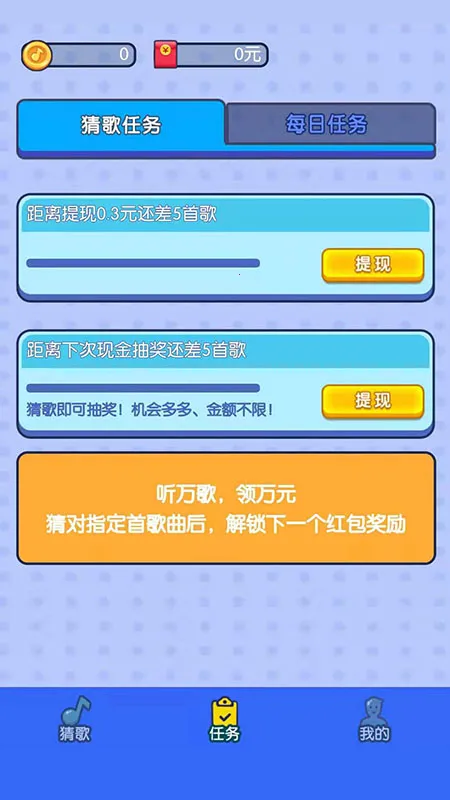 2、在这里可以轻松赚取零花钱,完成每日猜歌任务就能领取红包奖励,提现流程简单快捷。