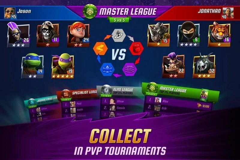 2. 众多角色可选:多达30多个忍者神龟角色供玩家升级训练,组成强大队伍,忍者神龟动漫漫画里出现的角色也会登场。