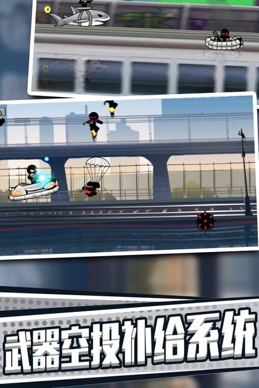 2. 武器空投补给系统:战场随机投放空投,内含机枪、霰弹枪等多样武器,玩家要在躲避攻击时精准拾取,根据场地选择趁手武器,为战斗提供关键助力。