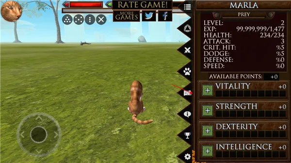 如果你渴望体验超刺激的猫咪模拟游戏,那这款《终极猫模拟器》绝对值得一试!进入游戏就能拥有 99999 经验值,快速熟悉玩法节奏。在超大开放地图里,你可随心操控猫咪自由奔跑探索,无拘无束。点击特殊目标能获大量经验,自由分配强化能力。冒险中还能解锁多样猫咪外观造型,个性十足。游戏亮点满满,真实模拟猫咪生活,要维持健康、饥饿、口渴和精力等状态,在多样环境找食物。还有至少六场 Boss 战,像猫群老大、凶猛野狗等,刺激感十足。家族系统能招募猫咪组成家族,抚养小猫成长。游戏特色也很棒,能自由自定义猫咪属性与外观,动态天气与昼夜循环让世界更真实,大型开放 3D 环境,场景丰富,玩法多样。快来开启猫咪冒险之旅吧!