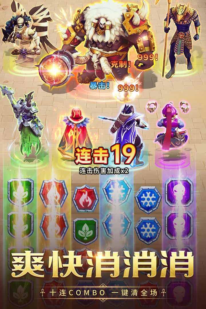 - 融合三消卡牌策略等多重玩法,带来不一样的消除新体验,还有华丽画面与动听旋律,操作轻松休闲,观感流畅。