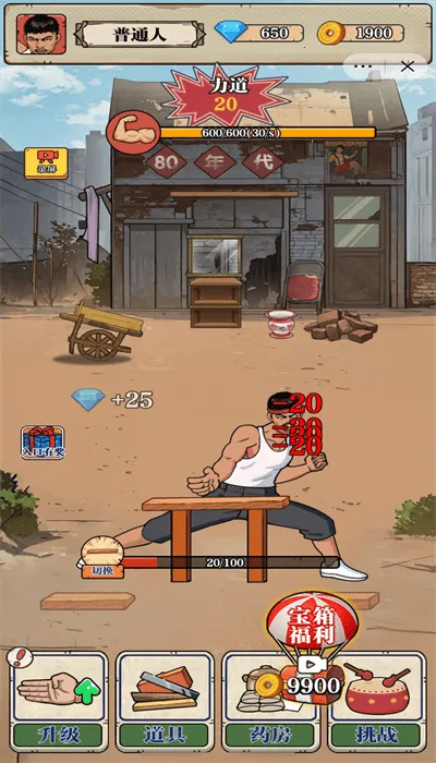 嘿,爱玩游戏的朋友们看过来!今天给你们介绍一款超有趣的手机小游戏——劈砖大师免广告版。在这款游戏里,你能体验轻松放置养成的快乐,开启魔幻好玩的劈砖之旅。它有丰富的日常活动,参与就能拿丰厚礼品,还能解锁新玩法。这里面藏着不少隐藏彩蛋哦!比如把痰盂扔到门里,或者左滑两次小推车,又或是用抹布擦亮玻璃,都有意想不到的收获,能得到大量奖励呢!游戏操作简单,点击屏幕就能劈砖积累经验,逐步解锁各种砖头和有意思的人物,挑战不同对手,成为劈砖大神。而且它解放双手,挂机也能享受放置玩法拿资源收益。还有多种道具助力升级,带来金币道具收益和解压乐趣。关卡玩法多样,能挑战不同难度,感受解压的修炼氛围。快来试试,看看你能不能发现更多隐藏彩蛋,享受劈砖的快乐吧!