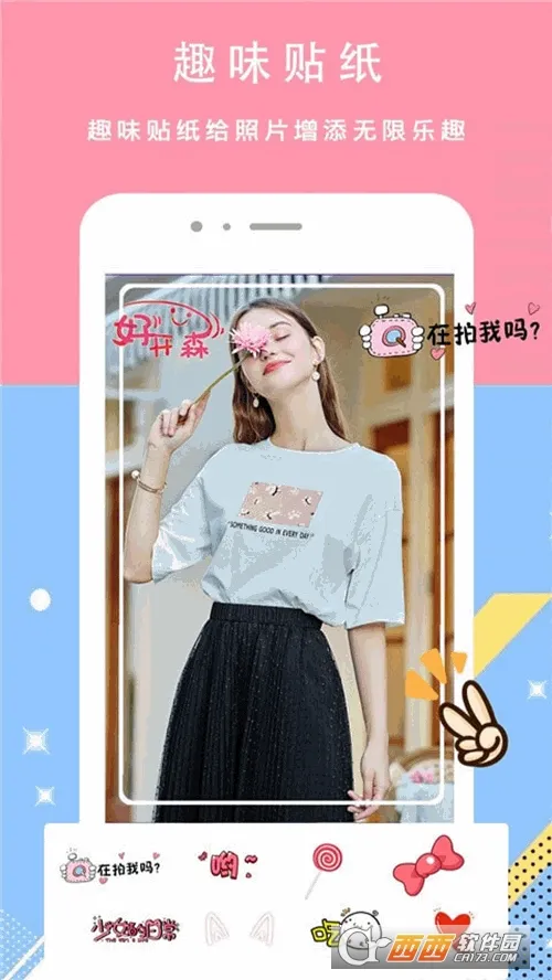 4. 各种滤镜效果、背景、艺术字、贴纸随意选择,还能自由拼图和切图。