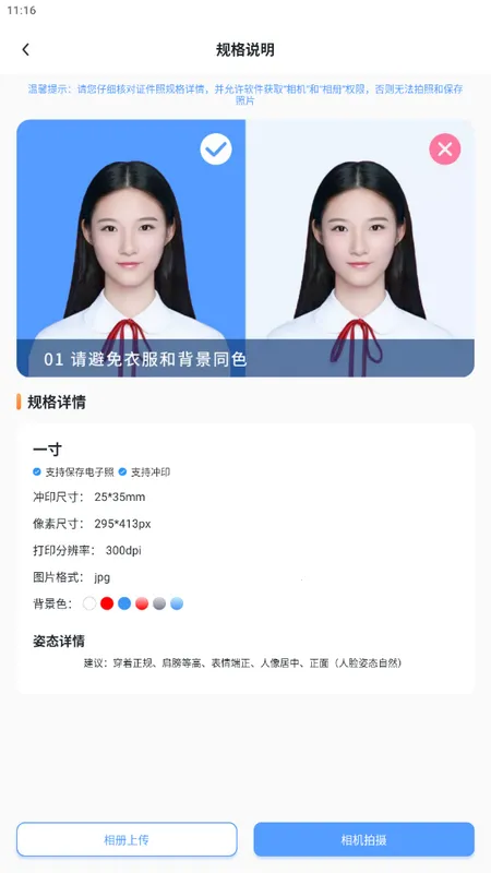 操作简单易上手,用户体验良好。界面简单直观,无论是打开软件、选择证件照模版,还是从相册导入图片等操作,都十分便捷,即使是初次使用的用户也能快速熟悉流程。