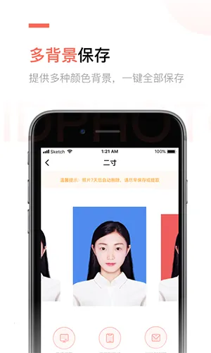 2. 智能拍摄算法:利用专业人脸识别技术精准抠图换底,一键换底,制作精细。