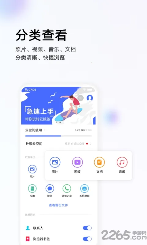 1. 文件备份支持手动备份照片、视频、文档等任意文件,还能按文件夹或类型组织,方便管理。