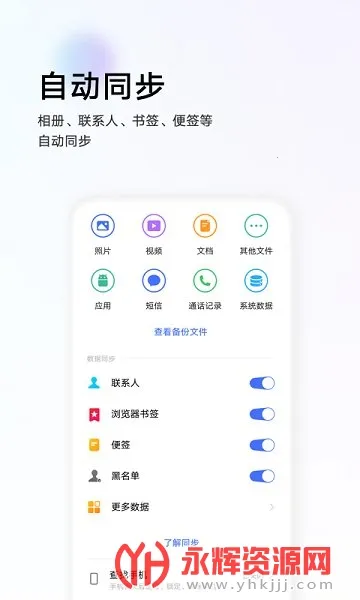2. 自动同步相册、联系人、书签、笔记等,数据实时更新,多设备使用更便捷。