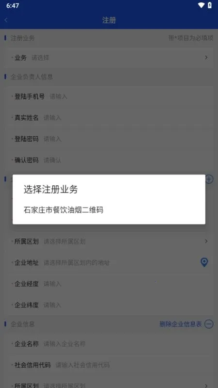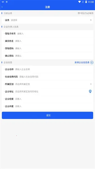 在使用体验上也很不错。整体界面简洁,以蓝白色调为主,登录注册修改密码等关键入口清晰可见。企业负责人可通过手机完成注册,填写相关信息生成完整电子档案,减少往返窗口提交材料的时间成本。