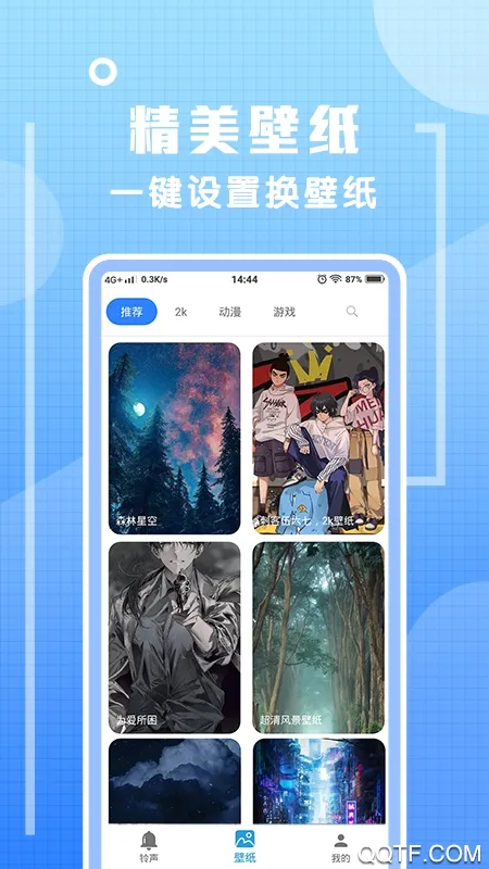 2、拥有大量炫酷铃声资源,还有丰富高清手机壁纸,一键换铃声换壁纸,美化手机更省心。