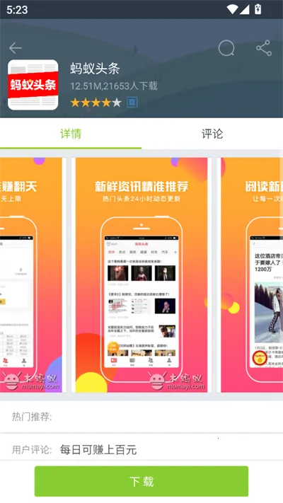 1. 木蚂蚁市场的下载体验很棒。它与国内知名CDN服务公司合作,针对手机网络进行优化,保证了下载过程快速又流畅,每天有数十万用户从这里获取各种资源,高速稳定下载,下游戏更爽。