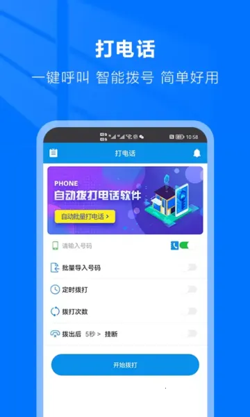 可以自由设置拨打时间、限制拨打次数等,还能一键批量导入,无需繁琐操作,真的很实用。