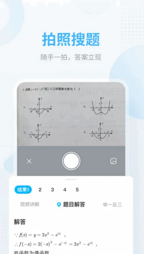 软件不仅有拍照搜题等基础功能,还提供作业辅导,板书语音实时解答多学科问题,另有定期学习报告。