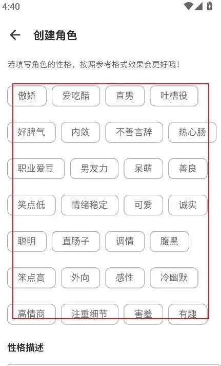 3、勾选性格标签
