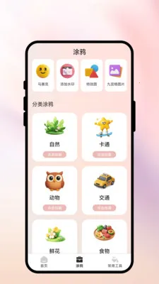 2. 提供马赛克上色涂鸦等趣味创作功能。