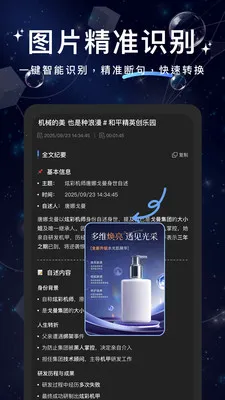 文案提取大神app是一款超实用的工具。它支持链接转文字,能秒提取短视频文案,无需下载视频,操作简单,适配自媒体人批量提取需求。视频转文字功能强大,2小时长视频也能无压力实时转写,准确率高,影视片段、课程视频等都能快速提取文字。语音转文字全场景适配,可实时语音输入、转写本地音频文件等,还能从第三方软件导入。图片文档识别能一键提取图片、Word、PDF等格式文字,适合多种场景。新版对页面进行了优化,使用起来更方便顺手。无论是自媒体创作、职场办公还是学生学习,它都能助力高效完成任务。有了它,告别手动打字烦恼,大幅提升效率,赶紧下载体验吧,让它成为你的随身效率小帮手。