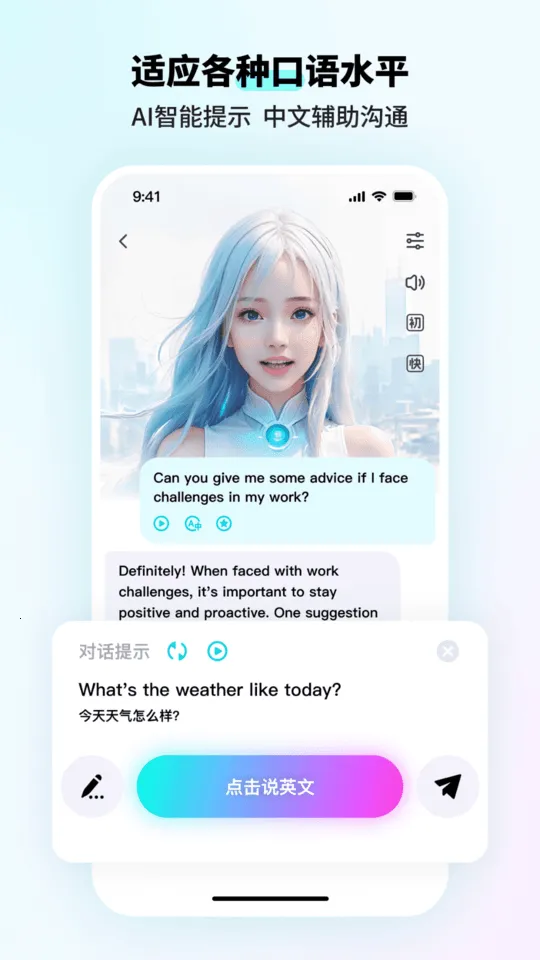 3. 个性化学习路径:根据用户初始测试的口语水平,智能推荐学习难度,动态调整对话内容和语速,适配不同水平用户。