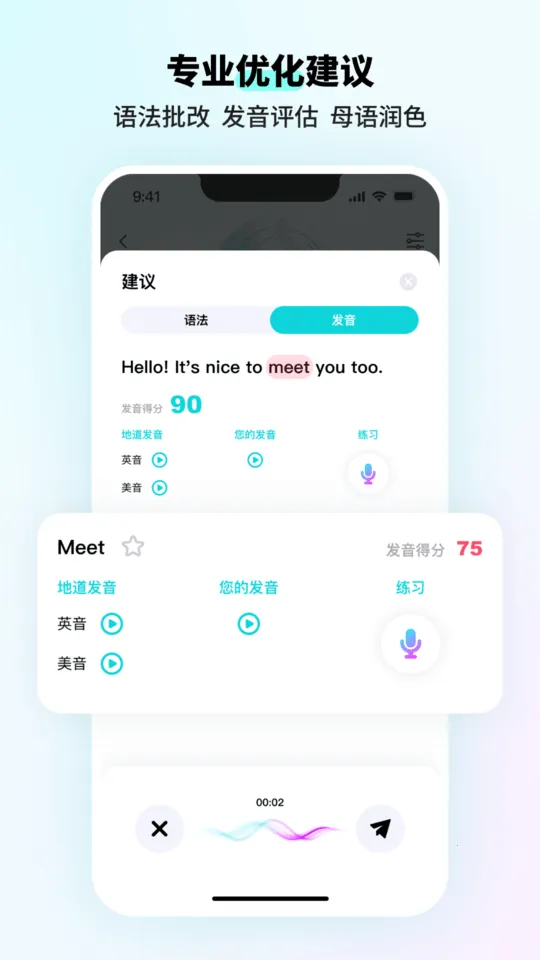 1. 精准发音纠正:采用先进语音识别技术,对每个单词句子进行多维度评分,能精准定位发音问题,提供针对性改进建议,练就标准口语。