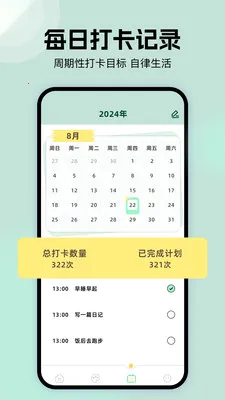 3、习惯打卡功能为用户增添了趣味,让用户在使用过程中更有动力和积极性。