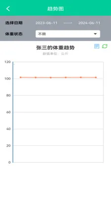 3、对于多人的体重记录支持良好。能根据时间段和体重状态进行查询,还可生成图形分析数据,清晰展现体重变化趋势,帮助更好地了解身体状况。