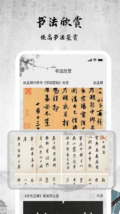 版本新特性定期更新和维护,保证你能持续拥有优质的书法鉴赏体验,在“换字体(书法鉴赏教学)”中不断探索书法艺术的奥秘,提升自身对书法的理解与感悟。