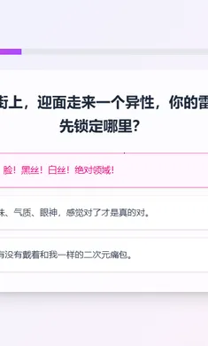 XPTI人格测试2026最新版本是专为男生打造的XP倾向评估工具,基于支配顺从、视觉情感等4个维度,20题就能快速测出真实XP类型,宣称MBTI已过时,快来测试你的XPTI人格。