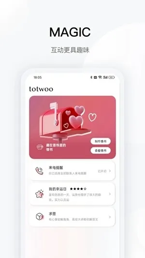 1、totwoo手链(情侣手链app)能带来独特且温馨的线上连接体验,让情侣之间更亲密。