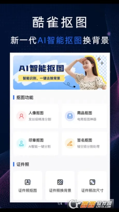 酷雀AI智能抠图最新手机版是一款AI智能抠图修图应用,有印章、证件照修复等功能。依托海量数据训练及算法学习,一键抠图三秒出效果,还能制作多种证件照,支持多场景,功能强大且操作简单。