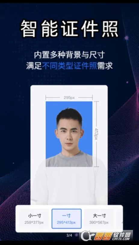 2. 内置多种背景与尺寸,可快速制作工作照、入学照、形象照等各类证件照,满足不同需求。