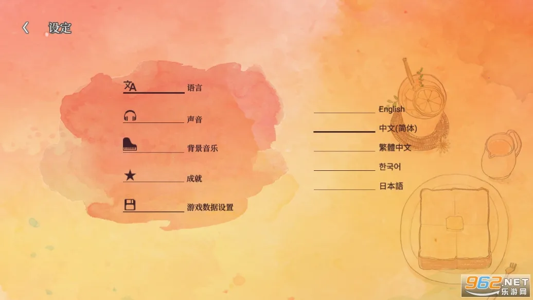 2、进入设置页面后选择“settings”,然后切换语言选项为中文,方便理解剧情与提示