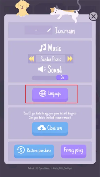 圣代野餐游戏怎么设置中文?