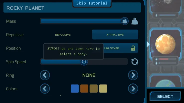 3. **丰富自定义选项**:可调整各种参数,实现高度自由的创造与实验,例如尝试不同质量、速度和距离组合,找到最佳稳定轨道。