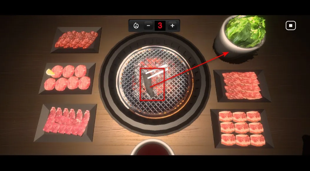 2、玩法多样,基础休闲玩法可随意放置肉类观察火候变化,享受慢节奏烤肉时光;还有佐餐增强体验,吃饭时开启游戏搭配视觉反馈,仿佛闻到烤肉香,还能切换模式提升用餐氛围感。