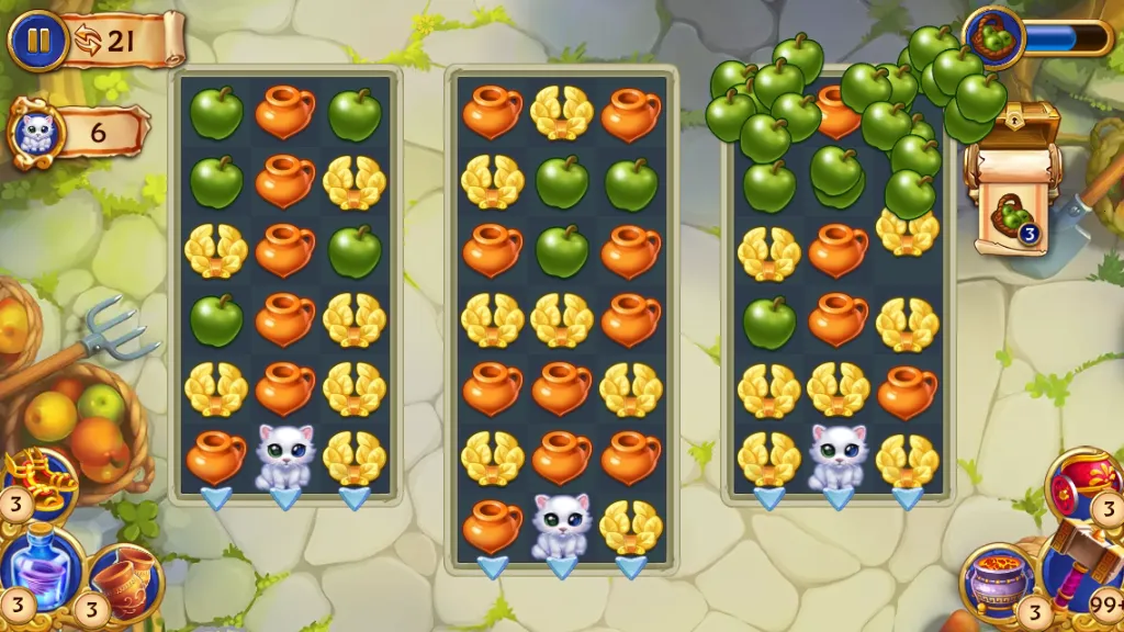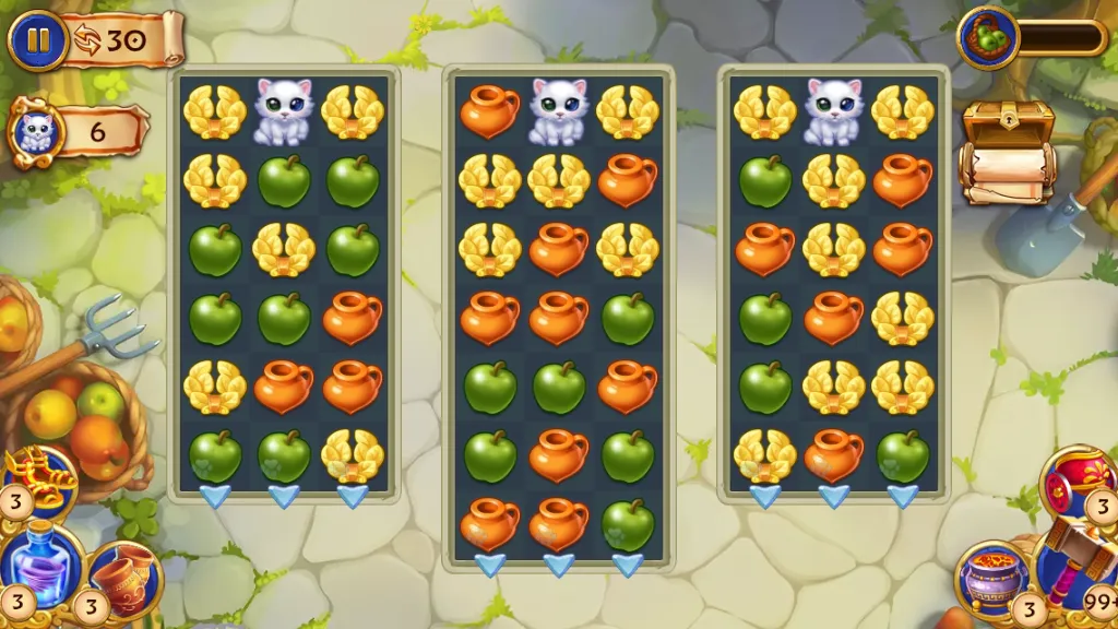 4. 经典三消玩法融合创新元素,多样化关卡设计,丰富道具系统。
