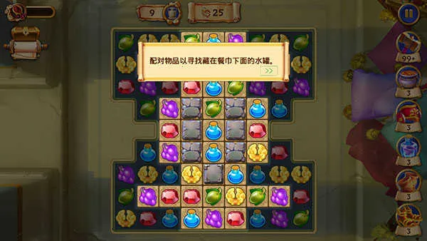 4、如要消除游戏区域内的石头,你需要在它们旁边匹配物品。