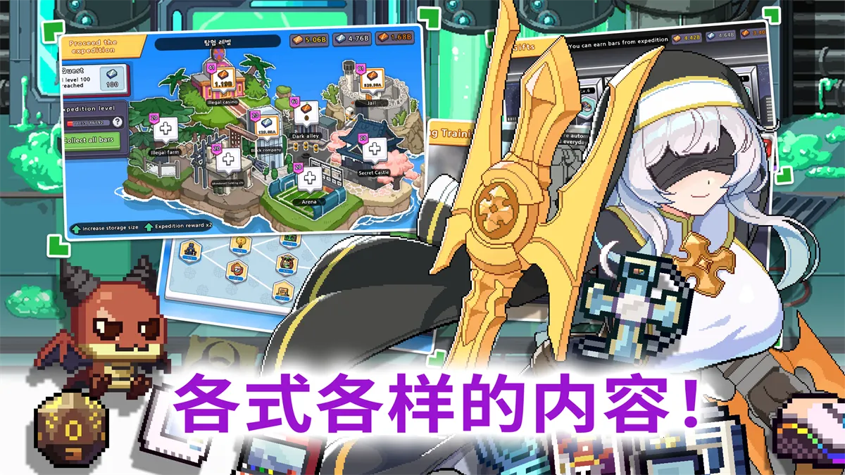 在充满魔法与科技的异世界,玩家化身穿越者带领少女战士战斗冒险。这是款结合格斗与放置养成的手游,通过战斗收集资源强化角色,提升战斗力,还有多种特色玩法与丰富内容。
