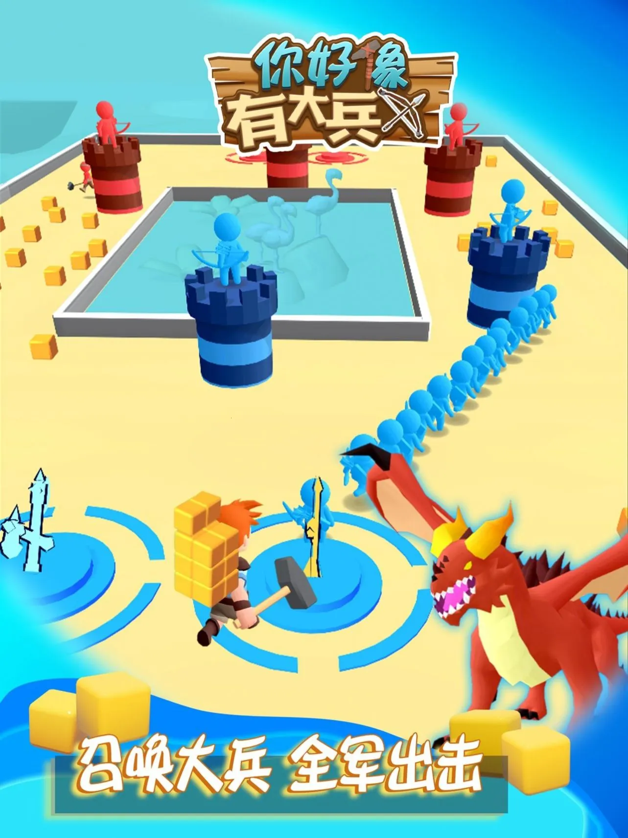你好像有大兵是一款像素方块人造型的休闲手游,有卡通画风与立体场景。玩家指挥士兵组阵容冒险,收集资源、招募士兵,还有多样关卡、宠物可解锁,操作简便易上手。