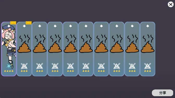 3. 其画面风格独特,以幽默诙谐的方式融入二次元冒险元素,结合恶搞情节,带来轻松又充满梗点的娱乐体验。界面简洁清晰,操作流畅易上手,无论是独自享受抽卡快乐,还是与朋友分享欧气时刻,都十分合适。而且还能通过看广告获得原石,实现无限抽取,满足收集欲。
