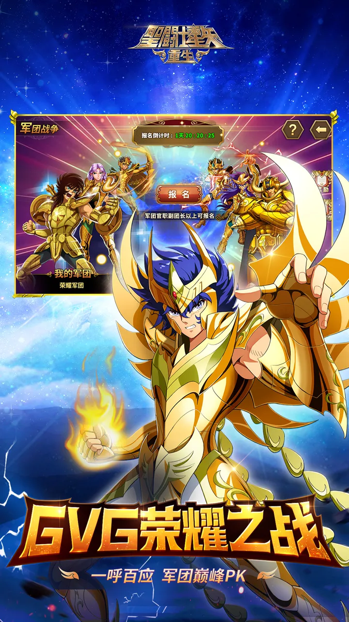 2. **玩法丰富**:有3V3银河争霸,告别单打独斗,能同时派出三支队伍对战,实时战斗系统带来超燃体验;还有军团副本,可与军团兄弟轮流攻击Boss拿奖励;角色重生系统能回收资源培养新角色;更有守护雅典娜、圣衣试炼等超多创新玩法。