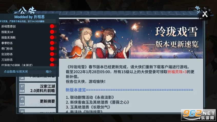 汉家江湖是汉家松鼠制作的武侠RPG手游。有庞大世界观与丰富剧情,能自由招募侠客、收集武学招式。还有多样装备系统、社交系统,可自定义角色,通过战斗、任务提升实力,体验高自由度江湖冒险。