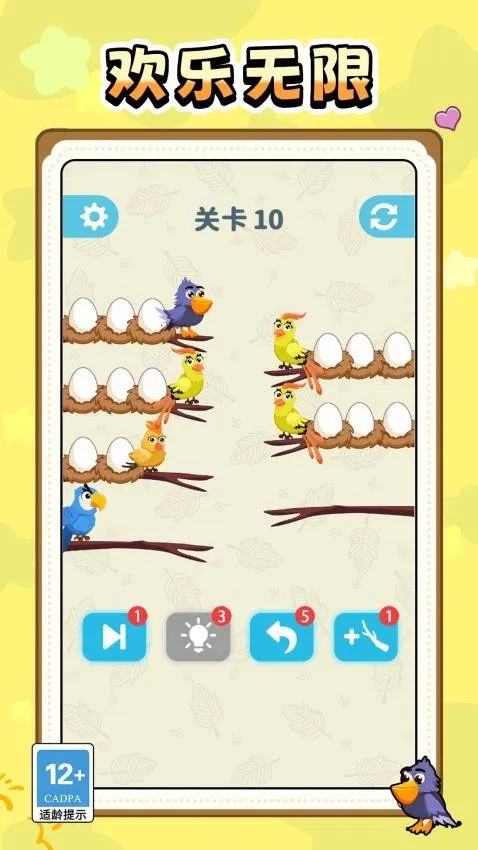 3. 美术风格温馨:小鸟造型圆润可爱,消除动画和音效轻快活泼,营造轻松无压力的游戏氛围。